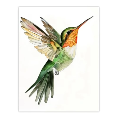 Artery8 Hummingbird in Flight Green Orange Watercolour Living Room Extra Large XL Wall Art Poster Print
