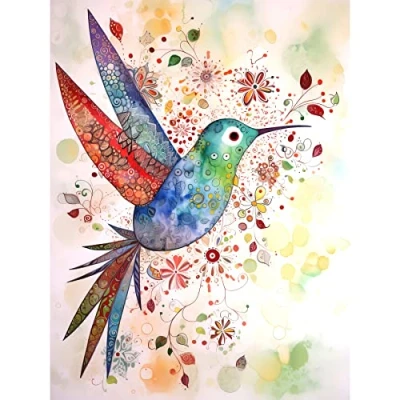 Artery8 Hummingbird With Flower Patterns Folk Art Watercolour Painting Large Wall Poster Print Thick Paper 18X24 Inch