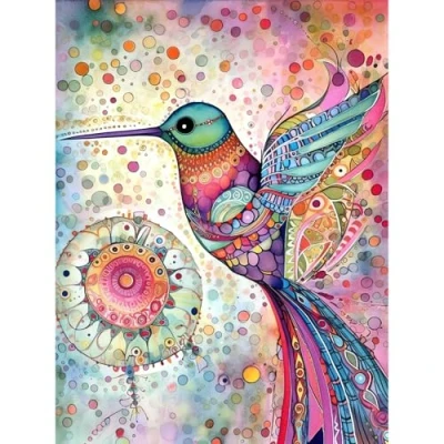 Artery8 Hummingbird With Mandala Patterns Colourful Folk Art Watercolour Painting Extra Large XL Wall Poster Print