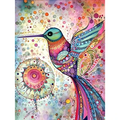 Artery8 Hummingbird With Mandala Patterns Colourful Folk Art Watercolour Painting Large Wall Poster Print Thick Paper 18X24 Inch