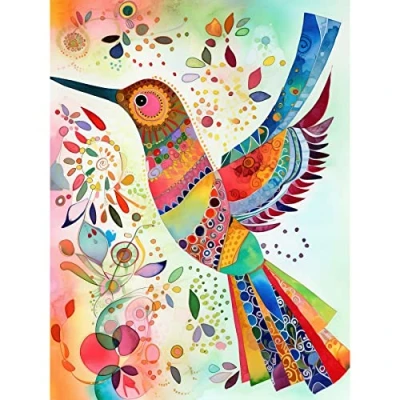 Artery8 Hummingbird With Multicolour Pattern Feathers Folk Art Watercolour Painting Large Wall Poster Print Thick Paper 18X24 Inch