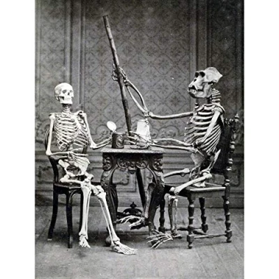Artery8 Huth Skeleton Man Gorilla Table Drink Photograph Premium Wall Art Canvas Print 18X24 Inch