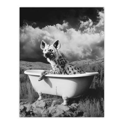 Artery8 Hyena In Desert Bathtub Black White Surreal Bathroom Toilet Large Wall Art Poster Print Thick Paper 18X24 Inch