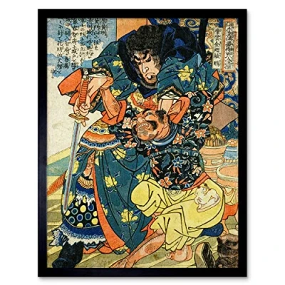 Artery8 Hyoshito Rinchu 108 Heroes Water Margin Utagawa Kuniyoshi Japanese Woodblock Reproduction Art Print Framed Poster Wall Decor 12x16 inch