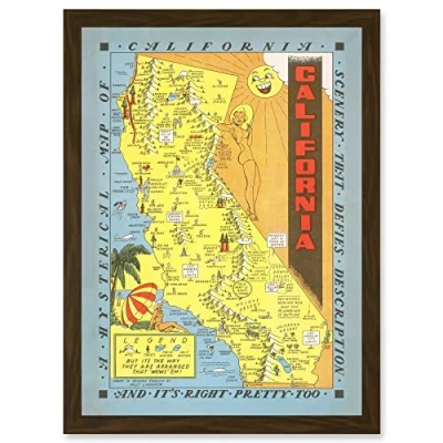 Artery8 Hysterical Map Lindgren 1948 California Pictorial Artwork Framed Wall Art Print A4