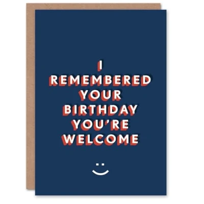 Artery8 I Remembered You Are Welcome Funny Cheeky For Him Birthday Card