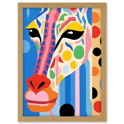 Artery8 I Woke Up Like This Giraffe Henri Matisse Style Artwork Vibrant Abstract Portrait Framed A3 Wall Art Print
