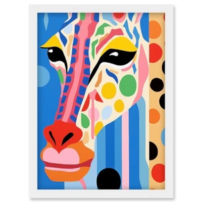 Artery8 I Woke Up Like This Giraffe Henri Matisse Style Artwork Vibrant Abstract Portrait Framed Wall Art Print A4