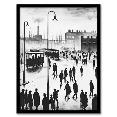Artery8 Industrial City Scene 1930s Drawing British Town Living Room Artwork Framed Wall Art Print 18X24 Inch