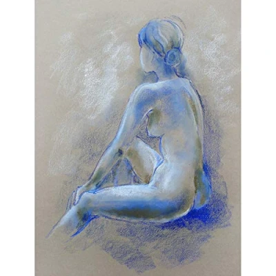 Artery8 Ingeborg Bernhard Blue Nude Drawing Art Print Canvas Premium Wall Decor Poster Mural