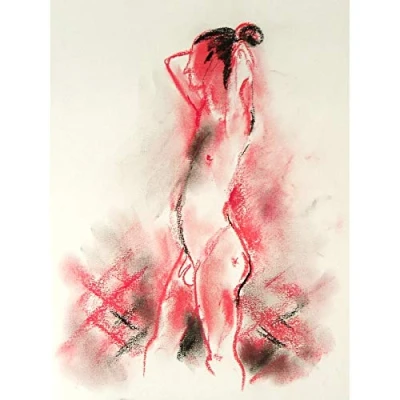 Artery8 Ingeborg Bernhard Male Nude Red Drawing Art Print Canvas Premium Wall Decor Poster Mural
