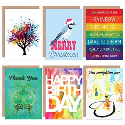 Artery8 Inspirational Rainbow Abstract Wizard of Oz All Occasions Various Assorted Blank Greeting Cards With Envelopes includes Xmas and Birthday Pack 6