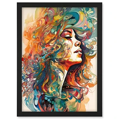 Artery8 Iris Goddess of Rainbows Multicoloured Flowing Hair Deity Portrait Modern Watercolour Illustration Artwork Framed A3 Wall Art Print