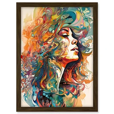 Artery8 Iris Goddess of Rainbows Multicoloured Flowing Hair Deity Portrait Modern Watercolour Illustration Artwork Framed A3 Wall Art Print