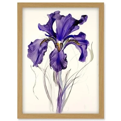 Artery8 Iris Reticulata Watercolour Flower Bloom Drawing Artwork Framed Wall Art Print A4
