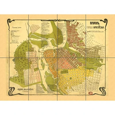 Artery8 Irkutsk Map Vintage XL Giant Panel Poster (8 Sections)