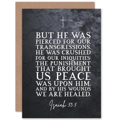 Artery8 Isaiah 53:5 By His Wounds We Are Healed Christian Bible Verse Quote Scripture Typography Sealed Greeting Card Plus Envelope Blank inside