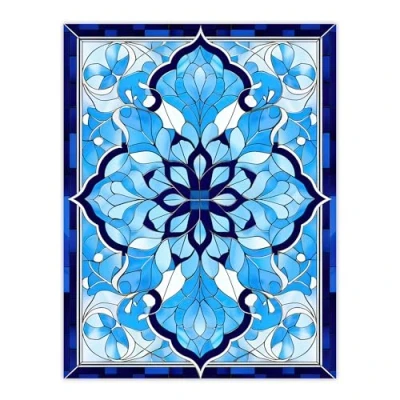Artery8 Islamic Vegetal Pattern Blue and White Stained Glass Inspired Geometric Floral Design Large Wall Art Poster Print Thick Paper 18X24 Inch