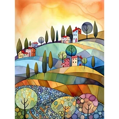 Artery8 Italian Countryside Midsummer Landscape Folk Art Large Wall Poster Print Thick Paper 18X24 Inch