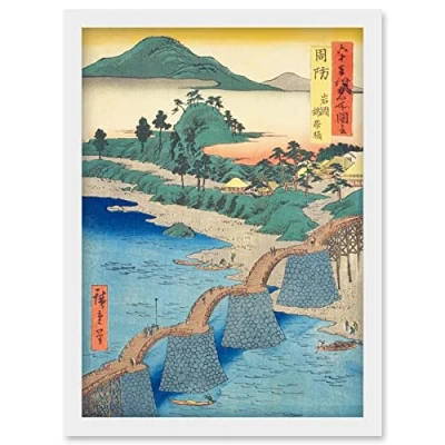 Artery8 Iwakuni, Kintai Bridge Suo Province Utagawa Hiroshige Japanese Woodblock Artwork Framed Wall Art Print A4