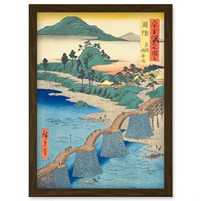 Artery8 Iwakuni, Kintai Bridge Suo Province Utagawa Hiroshige Japanese Woodblock Artwork Framed Wall Art Print A4