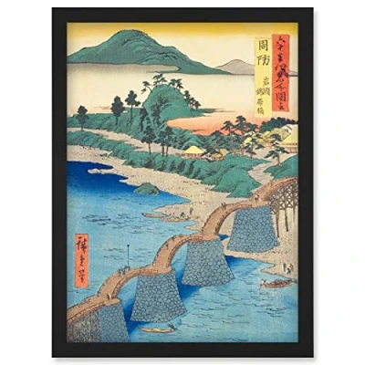 Artery8 Iwakuni, Kintai Bridge Suo Province Utagawa Hiroshige Japanese Woodblock Artwork Framed Wall Art Print A4