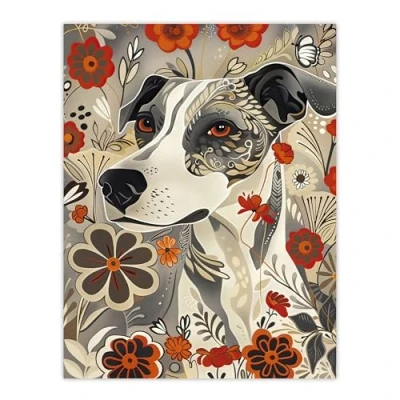 Artery8 Jack Russell Terrier Floral Dog Lover Pet Portrait Living Room Large Wall Art Poster Print Thick Paper 18X24 Inch