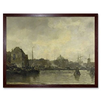 Artery8 Jacob Maris Cityscape Ships Painting Art Print Framed Poster Wall Decor 12x16 inch