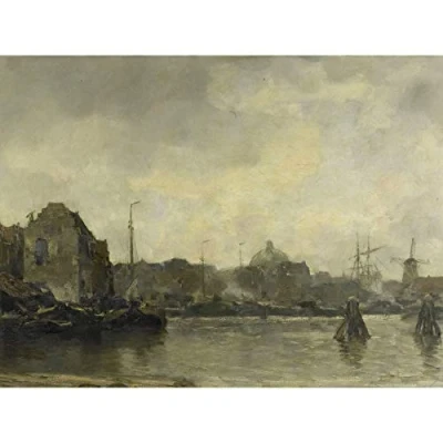 Artery8 Jacob Maris Cityscape Ships Painting Premium Wall Art Canvas Print 18X24 Inch