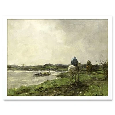 Artery8 Jacob Maris Towpath Canal Horse Painting Art Print Framed Poster Wall Decor 12x16 inch