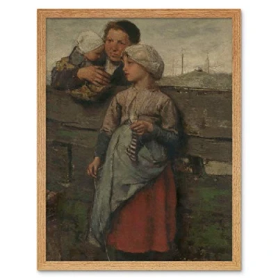 Artery8 Jacob Maris Villagers Child Infant Painting Art Print Framed Poster Wall Decor 12x16 inch