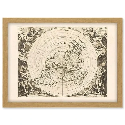 Artery8 Jacques Cassini Flat Earth Map 1713 Sepia Colour Terrestrial Planisphere According to Astronomers New Observations Decorative World Polar Projection Artwork Framed A3 Wall Art Print