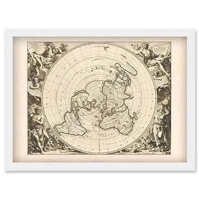 Artery8 Jacques Cassini Flat Earth Map 1713 Sepia Colour Terrestrial Planisphere According to Astronomers New Observations Decorative World Polar Projection Artwork Framed Wall Art Print A4