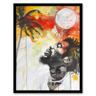 Artery8 Jamaican Man Portrait Sunset Palm Tree Rastafari Living Room Artwork Framed Wall Art Print A4