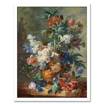 Artery8 Jan Van Huysum Still Life With Flowers Painting Art Print Framed Poster Wall Decor 12x16 inch