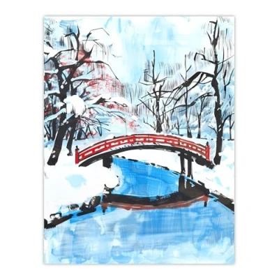 Artery8 Japanese River Bridge in Winter Forest Landscape Living Room Large Wall Art Poster Print Thick Paper 18X24 Inch