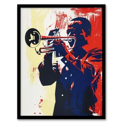 Artery8 Jazz Music Trumpet Player Portrait Graphic Design Living Room Artwork Framed Wall Art Print A4