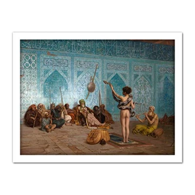 Artery8 Jean Leon Gerome Snake Charmer Painting Artwork Framed Wall Art Print 18X24 Inch