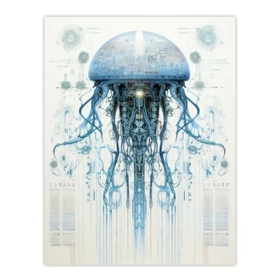 Artery8 Jellyfish Military Robot Hybrid Schematic Blueprint Futuristic Secret Complex Arcane Manuscript Gift For Him Man Cave Extra Large XL Wall Art Poster Print