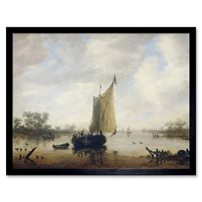 Artery8 Jeronymus Van Diest Riverview Boat Painting Art Print Framed Poster Wall Decor 12x16 inch