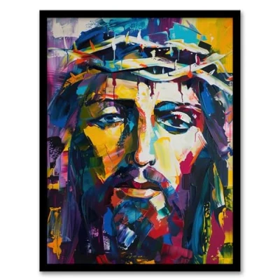 Artery8 Jesus Thorn Crown Portrait Modern Living Room Artwork Framed Wall Art Print A4