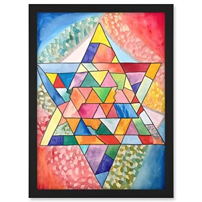 Artery8 Jewish Star Of David Patterns Geometric Folk Art Watercolour Painting Artwork Framed A3 Wall Print