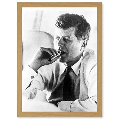 Artery8 JFK John F Kennedy Smoking Cigar US President Picture A4 Artwork Framed Wall Art Print