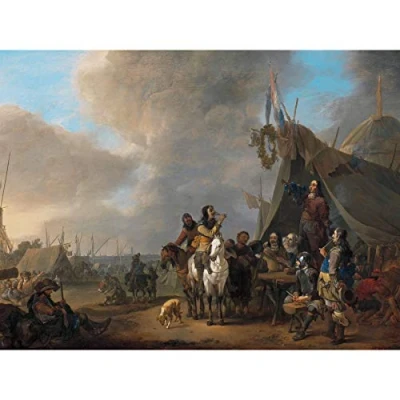 Artery8 Johannes Lingelbach Army Camp Painting Premium Wall Art Canvas Print 18X24 Inch