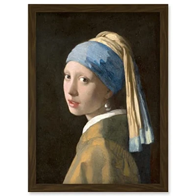 Artery8 Johannes Vermeer Girl with a Pearl Earring Reproduction Painting Artwork Framed Wall Art Print A4