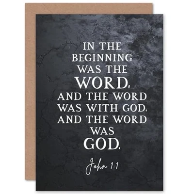 Artery8 John 1:1 The Word Was God Christian Bible Verse Quote Scripture Typography Sealed Greeting Card Plus Envelope Blank inside