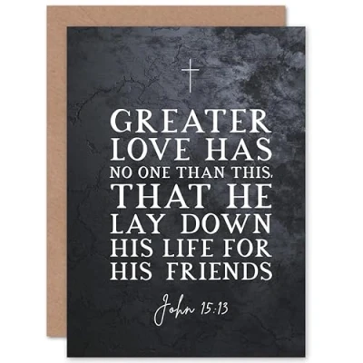 Artery8 John 15:13 Lay Down His Life For Friends Christian Bible Verse Quote Scripture Typography Sealed Greeting Card Plus Envelope Blank inside