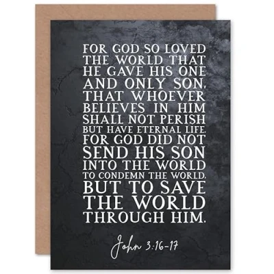 Artery8 John 3:16 17 Eternal Life Sent His Son To Save The World Christian Bible Verse Quote Scripture Typography Sealed Greeting Card Plus Envelope Blank inside