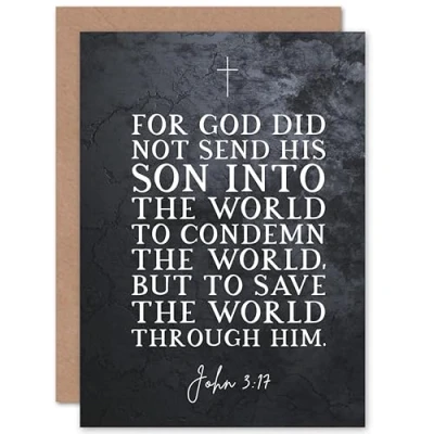 Artery8 John 3:17 God Sent His Son To Save The World Christian Bible Verse Quote Scripture Typography Sealed Greeting Card Plus Envelope Blank inside