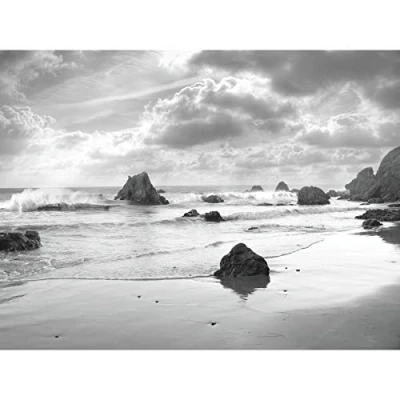 Artery8 John Beach Waves Black White Photo Extra Large XL Wall Art Poster Print